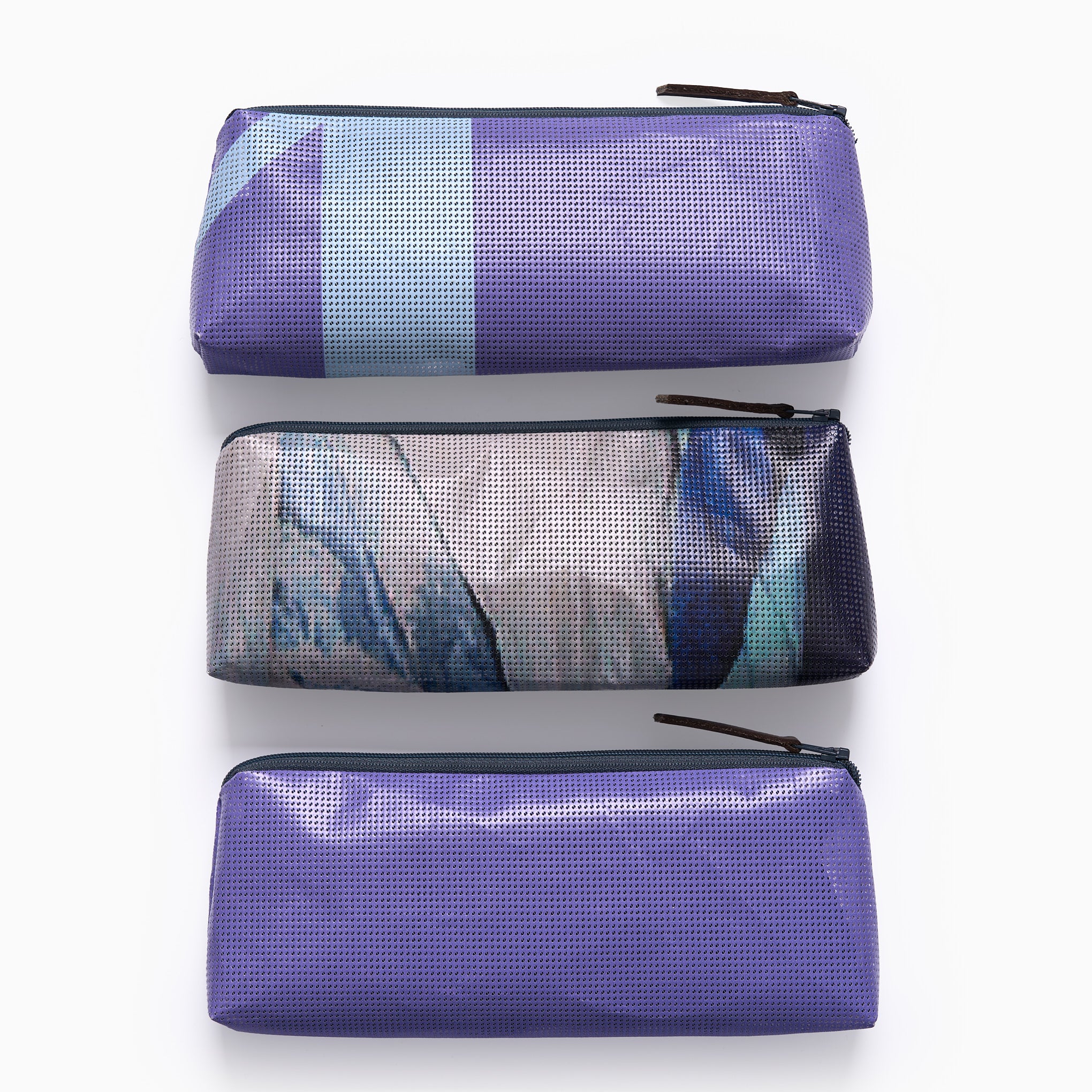 Once a PVC banner, now a great pencil case! Each case is a unique one off design, depending on which section of exhibition banner it has been cut from. This is the perfect hard wearing pencil case, to keep all your stationery bits and bobs tidy and easy to find.