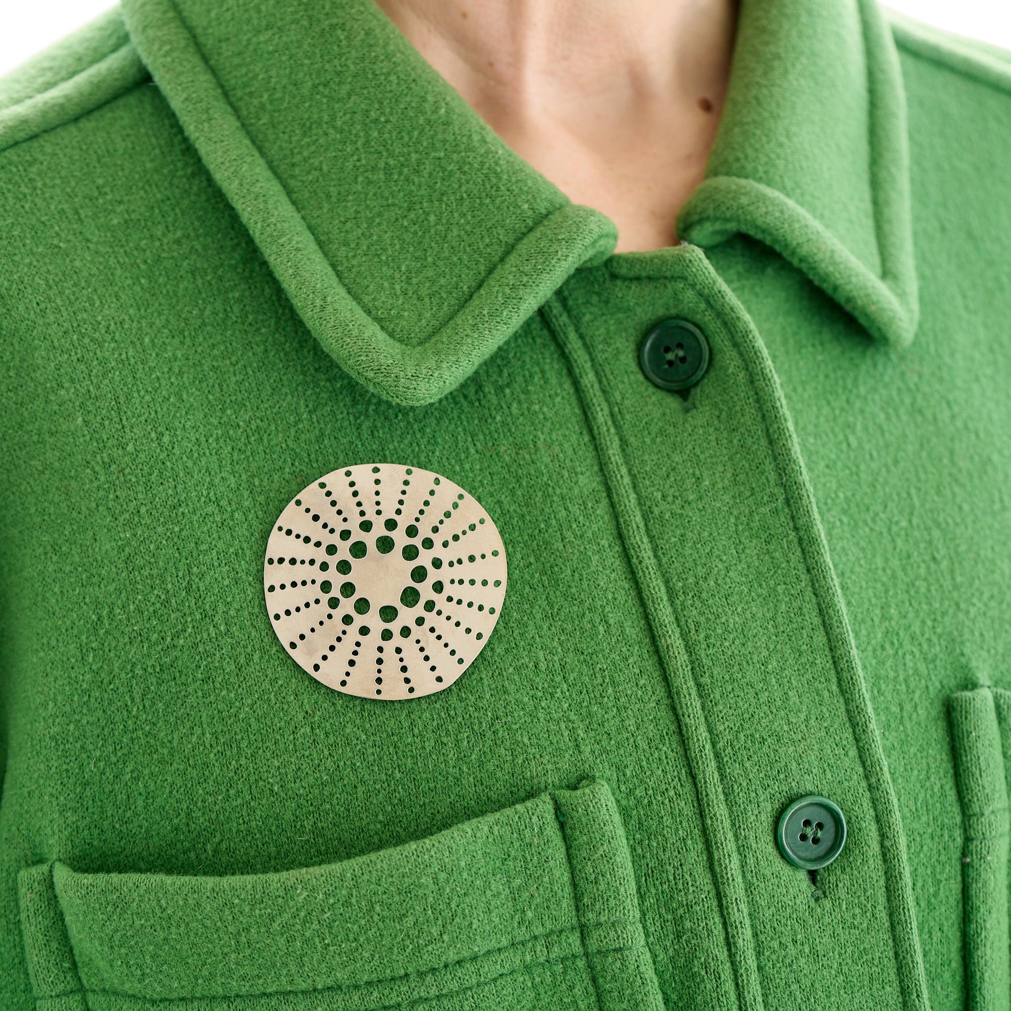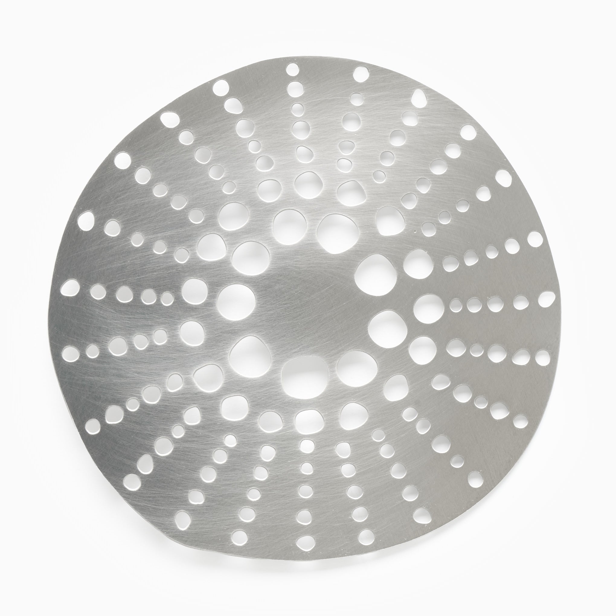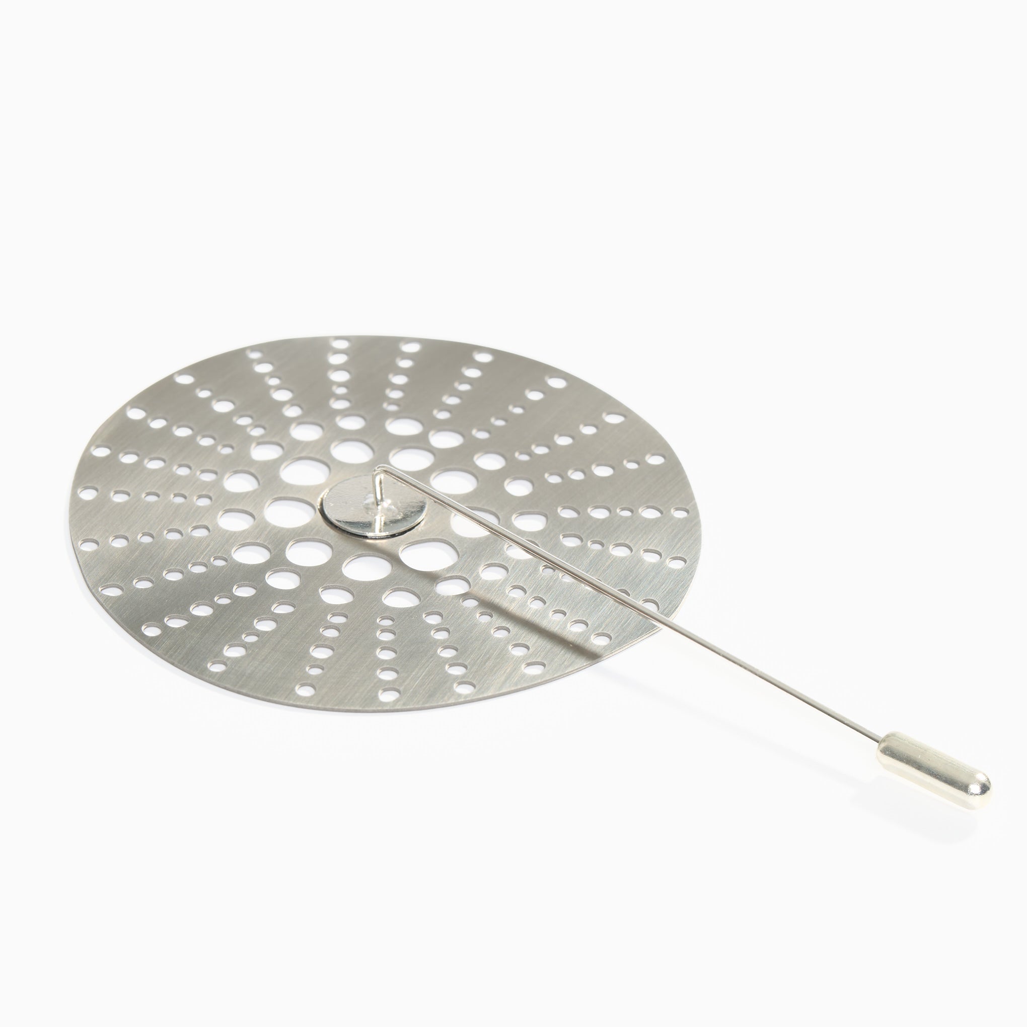 Crafted in matte anodised aluminium, this pin brooch has a silver plated stick pin and protector. Created collaboratively between Tom Pigeon's metal workshop in the West of Scotland and their canal-side studio in Manchester, this exclusive piece is a thoughtful gift for lovers of design, jewellery and contemporary craft.