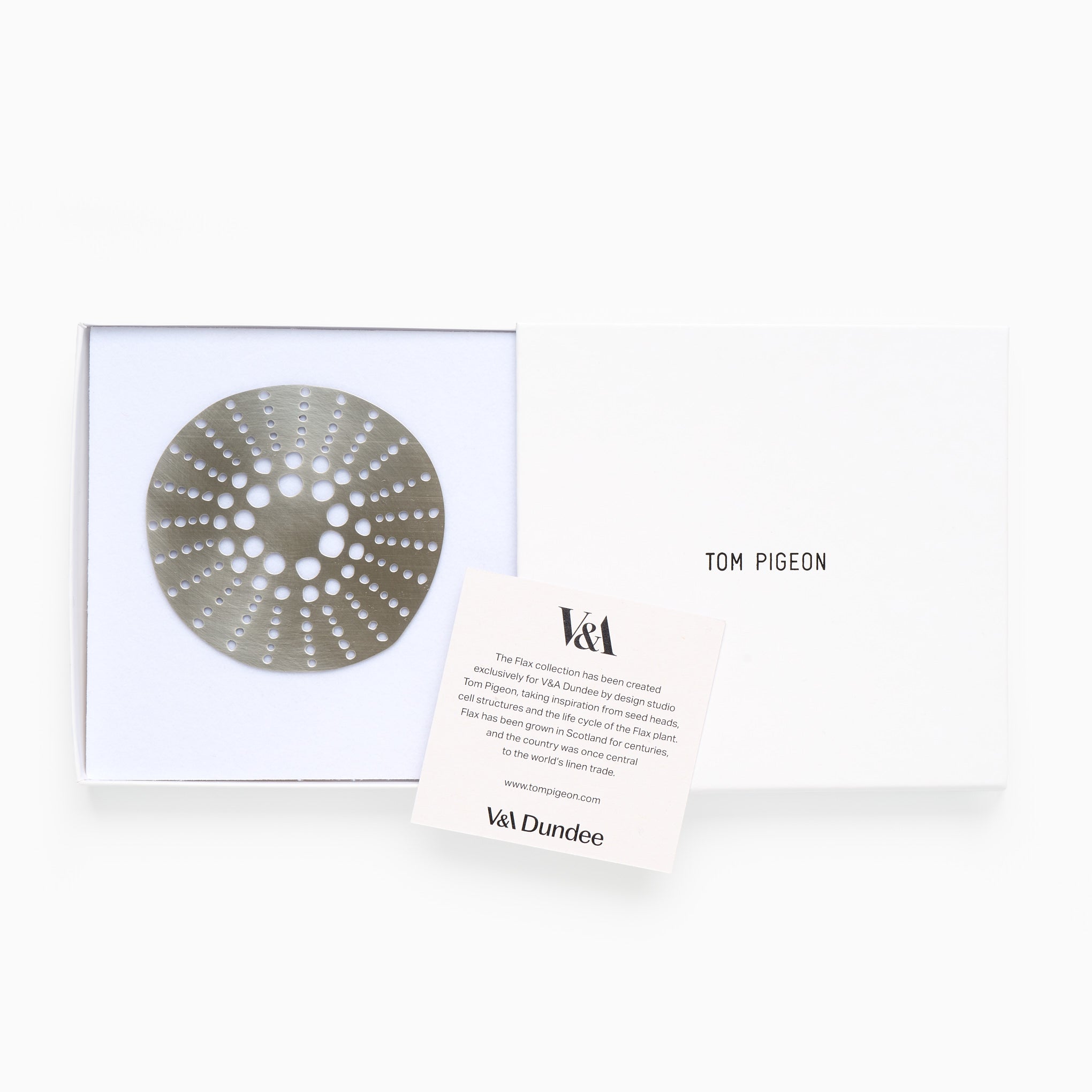 Designed exclusively for us by the clever Kirsty of Tom Pigeon fame, this Flax Cell brooch takes inspiration from seed heads, cell structures and the life cycle of the Flax plant. Flax has been grown in Scotland for centuries and the country was once central to the world's linen trade.