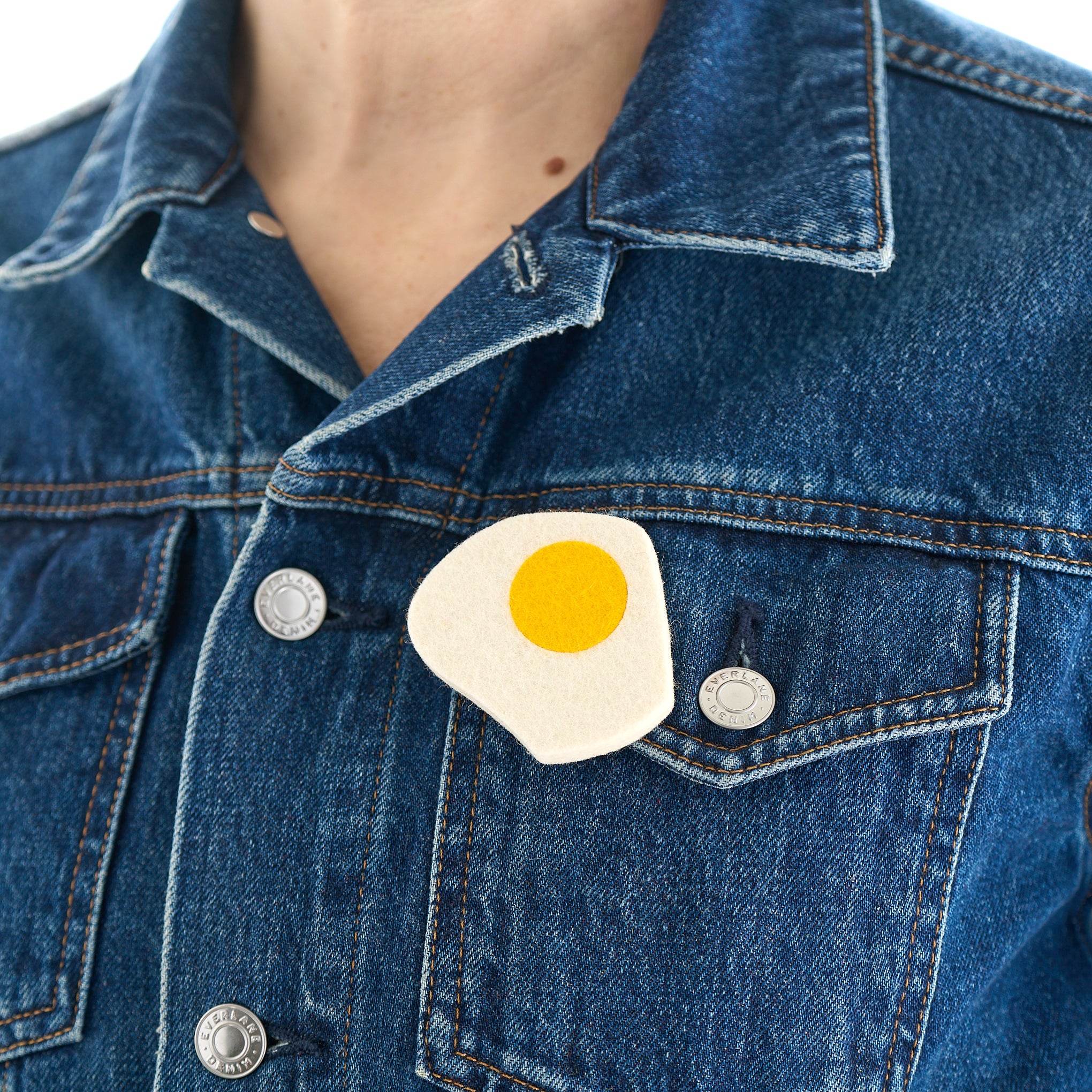 Fried egg felt brooch handmade by Scottish jewellery designer Lynsey Walters