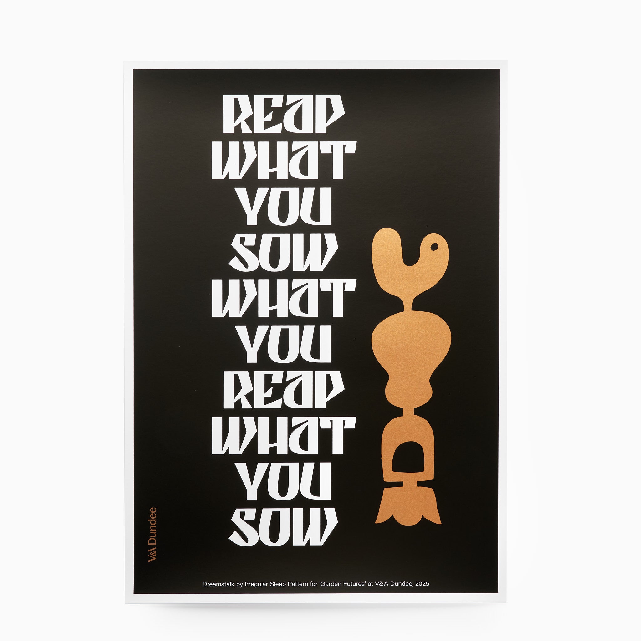 Screen printed in an elegant black and white colourway with a warm pop of metallic bronze ink, this A2 graphic art print balances strong typography with a sculptural garden motif. The metallic details catch the light beautifully, giving the print depth and presence on the wall.