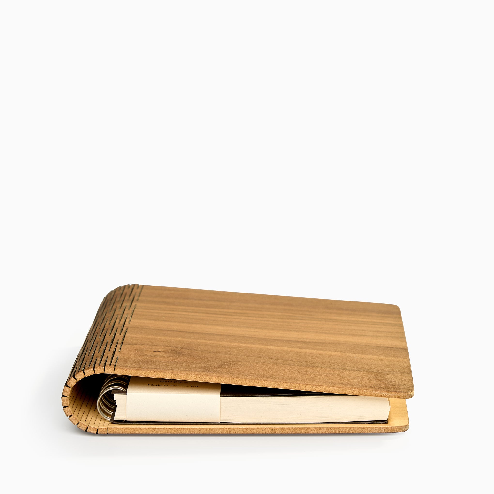 A hand crafted refillable notebook made from natural wood, made right here in Dundee by The Bonny Company. This Walnut veneered binder is a thing of tactile beauty, once you feel how beautifully the louvered laser cut hinge works, you won't be able to resist this book. They complement any space; from your living room coffee table to the office and conference room. One notebook, endless refills.