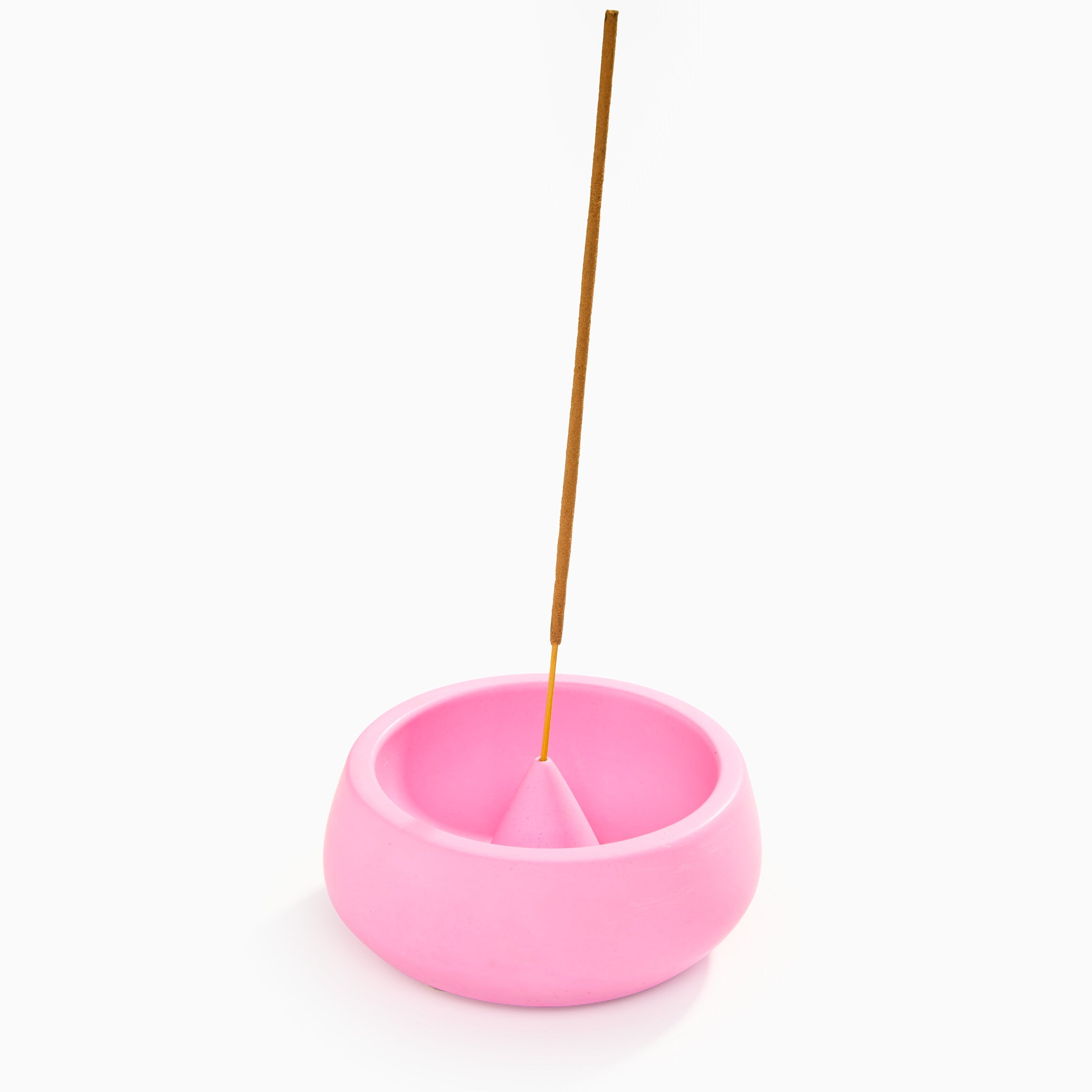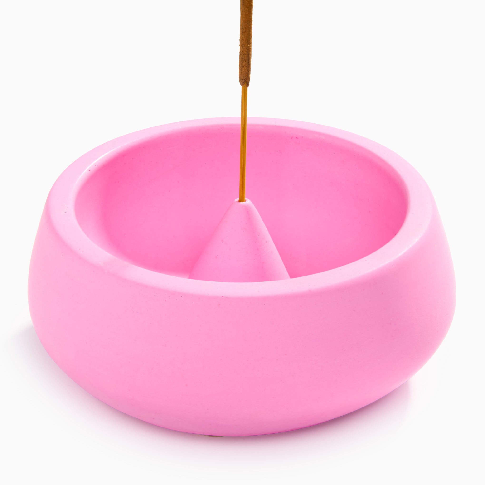 A joyously vibrant neon pink Jesmonite incense stick bowl holder made in Newport on Tay by the very clever Nine Angels.