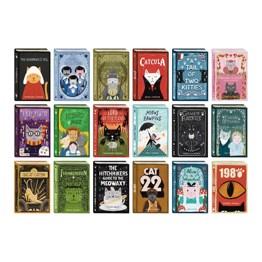 Revisit the classics with this meowsterpiece of a jigsaw, featuring eighteen book titles through the lens of cat loving acclaimed illustrator Nia Gould.