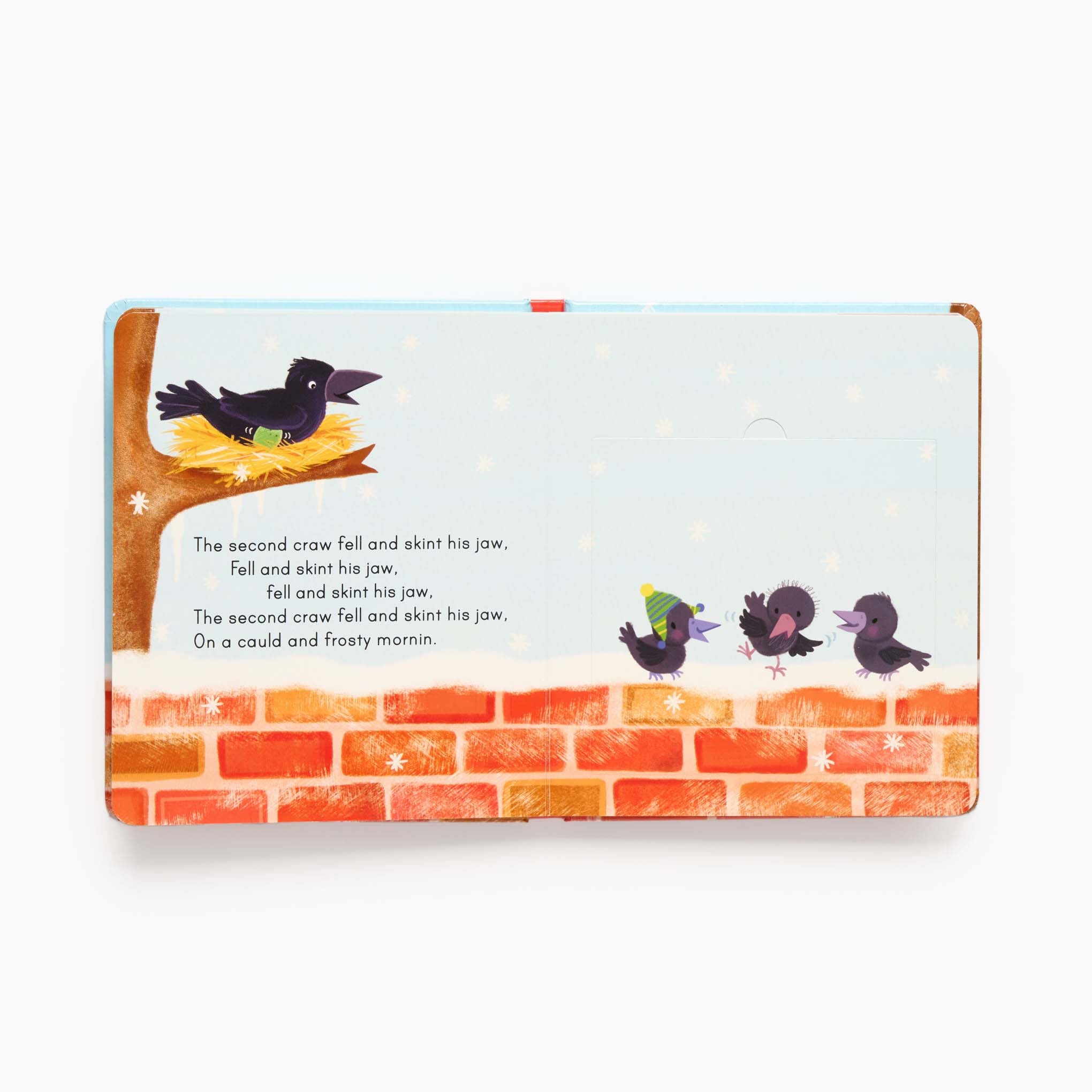 Sing along and lift the flaps to discover what the cheeky -- and chilly -- little craws get up to sitting on their wall! The first craw is crying for his mum, the second falls and skins his jaw and the third can't fly at all. But where is the fourth little craw? With all this mischief, it's just as well mummy crow is waiting to give them a big hug.
