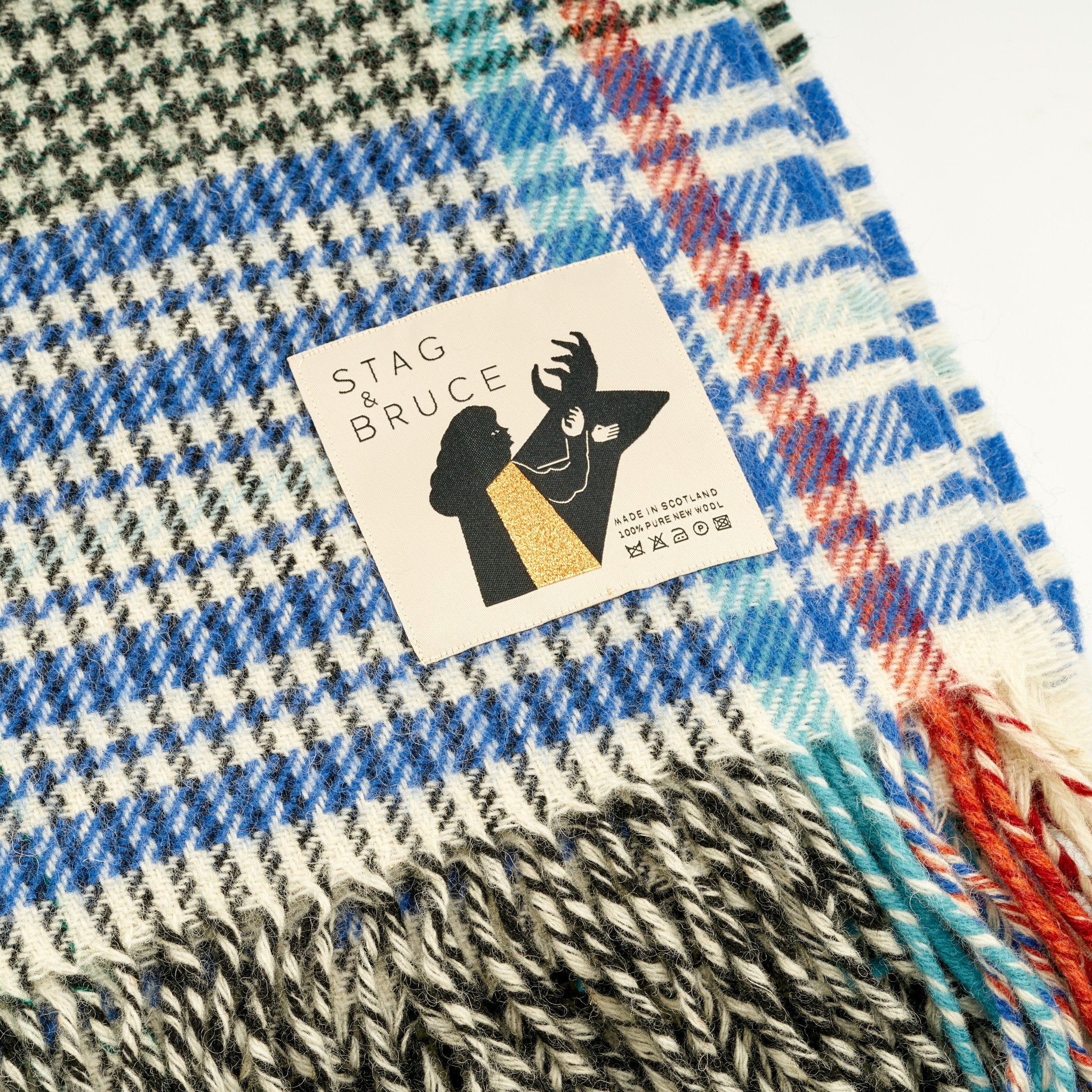 We are delighted to now stock these gorgeous Shepherd's Plaid blankets by Stag and Bruce. This limited-edition colourway is woven from ethically sourced yarn and features a royal blue border, providing a bold, stylish pop of colour to any interior.