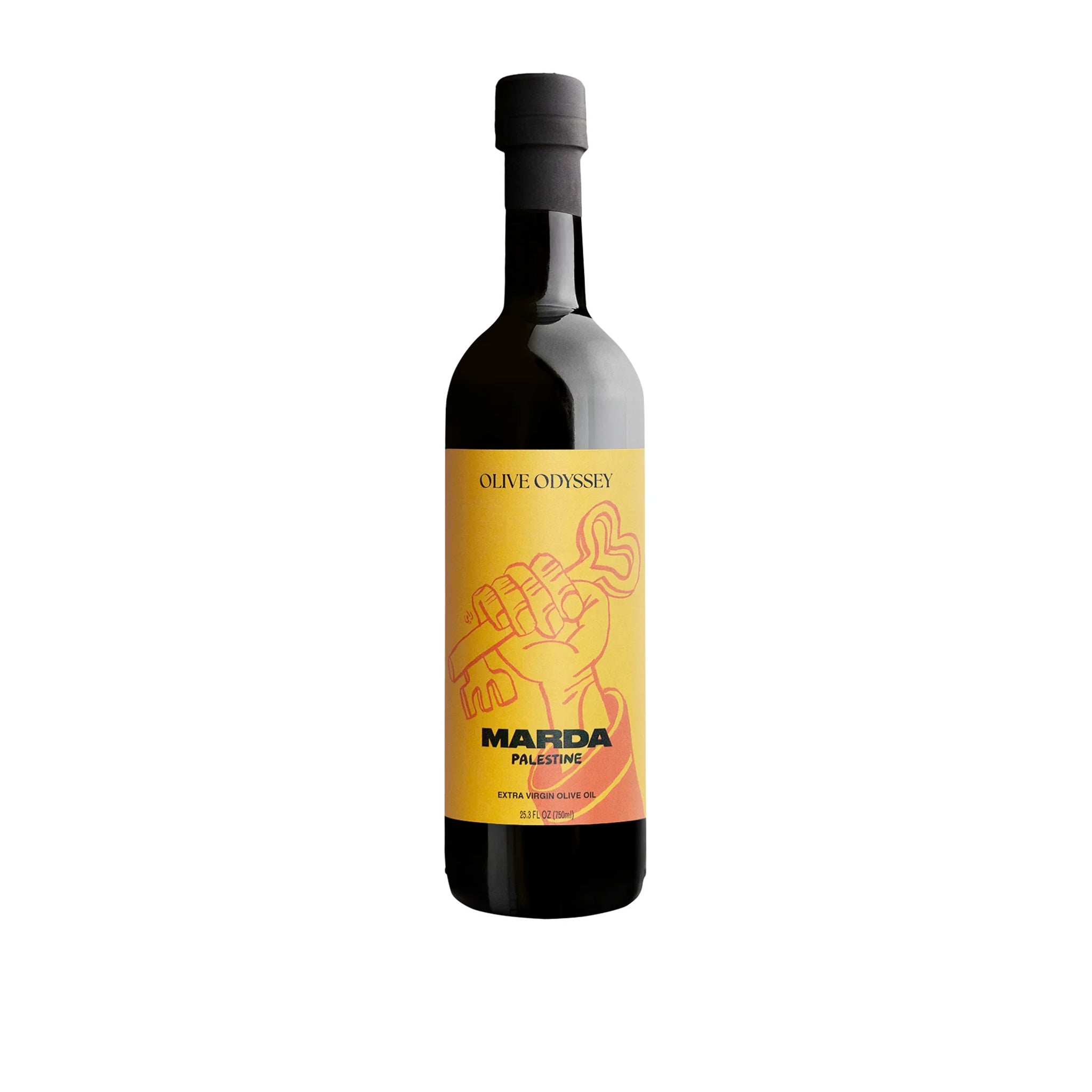 Each bottle features bold and beautiful graphic artwork by Palestinian designers. The Marda bottle artwork is by Rami Afifi, its design is symbolic of the right to return, inspired by archival photographs of Palestinians holding the keys to their homes.