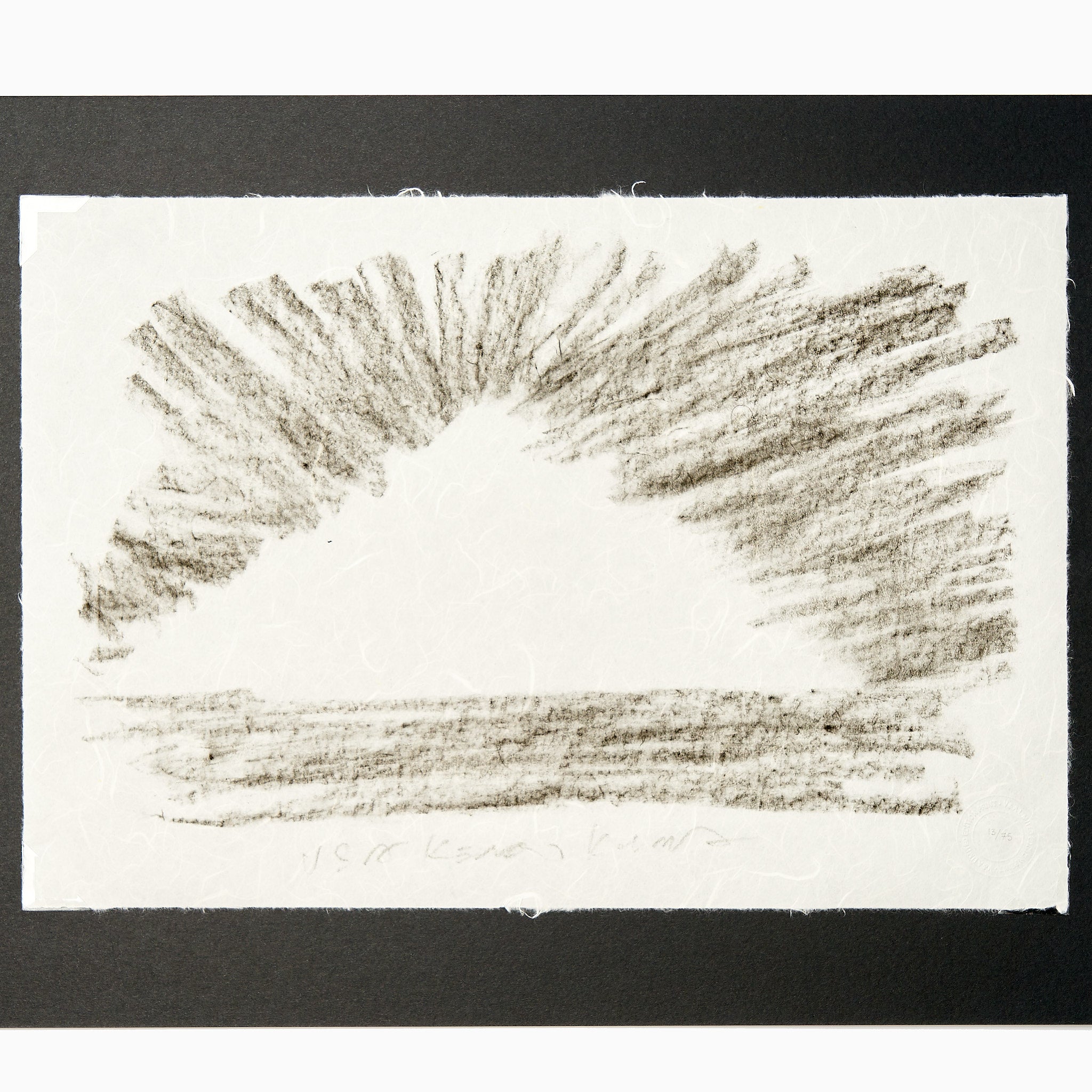 The artwork is reproduced as a Giclée print on Awagami Unryu Japanese paper, a delicate handmade paper known for its strength and texture. Each print features hand-torn edges and is presented in a black folio.